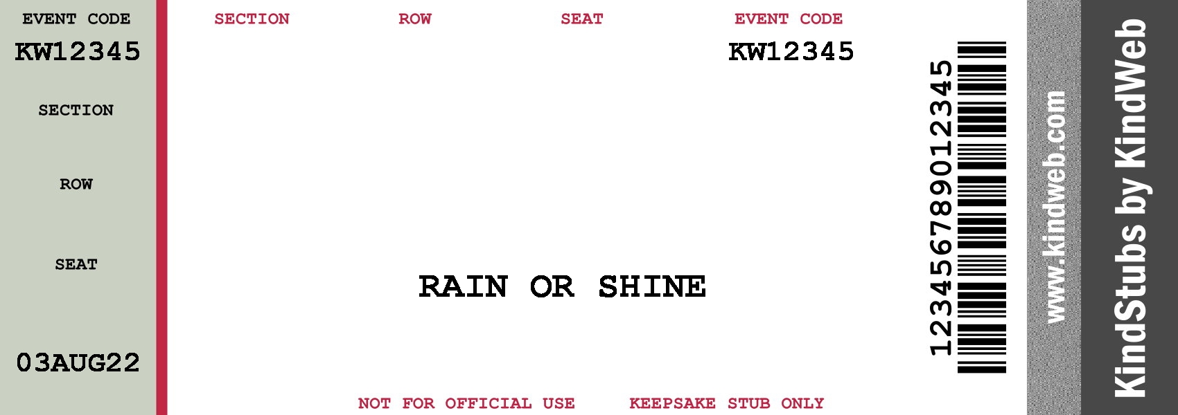 Enter text and click button to insert text into the ticket stub